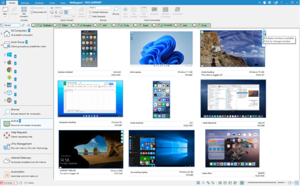 Adding to traditional one-to-one remote control capabilities, NetSupport Manager excels as a one-to-many solution: from monitoring multiple systems in real time and showing the